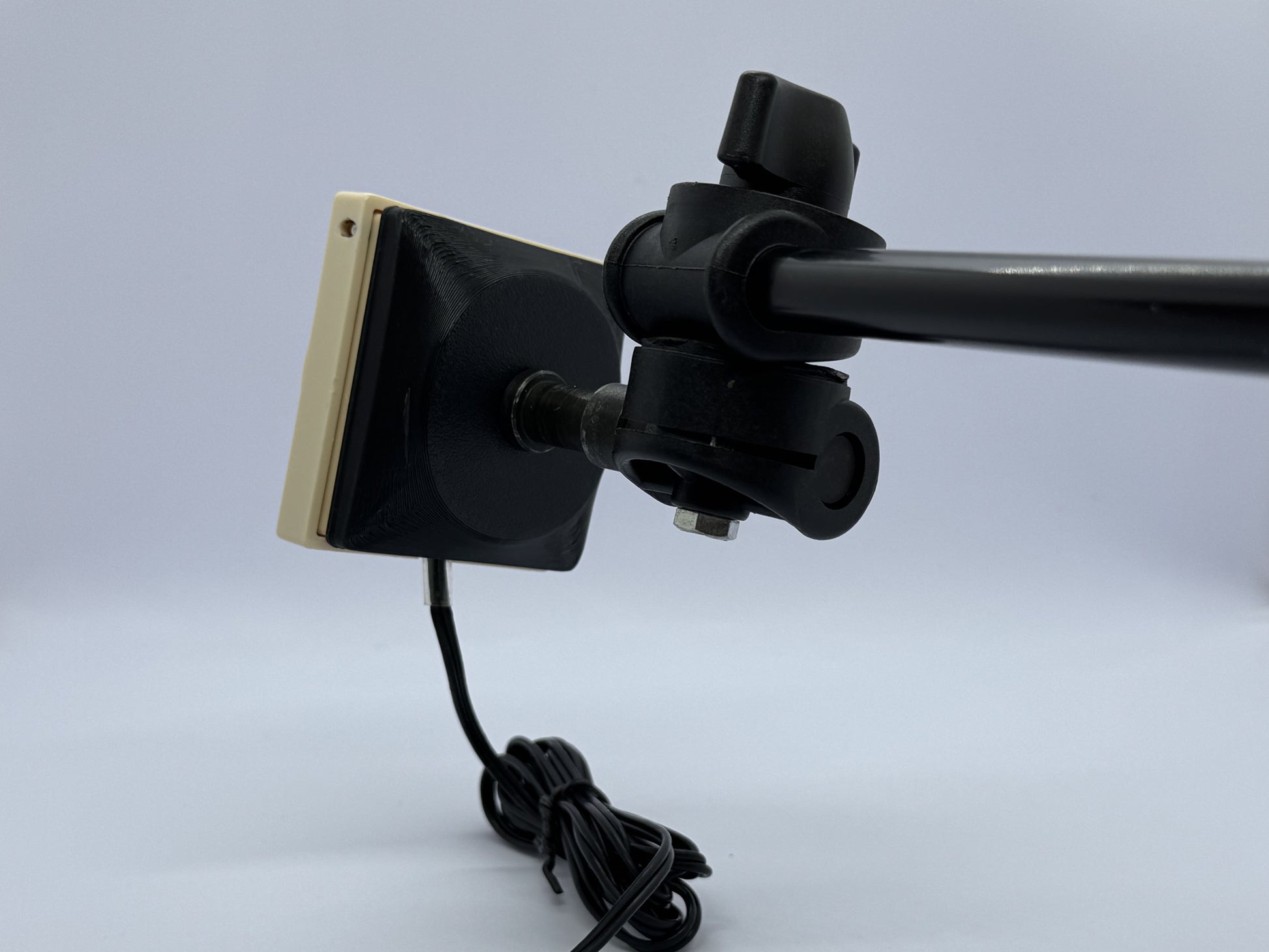 入力スイッチをしっかりと固定できるので、アームに取り付けてお好みの位置や角度でシンプルスイッチをお使いいただけます。