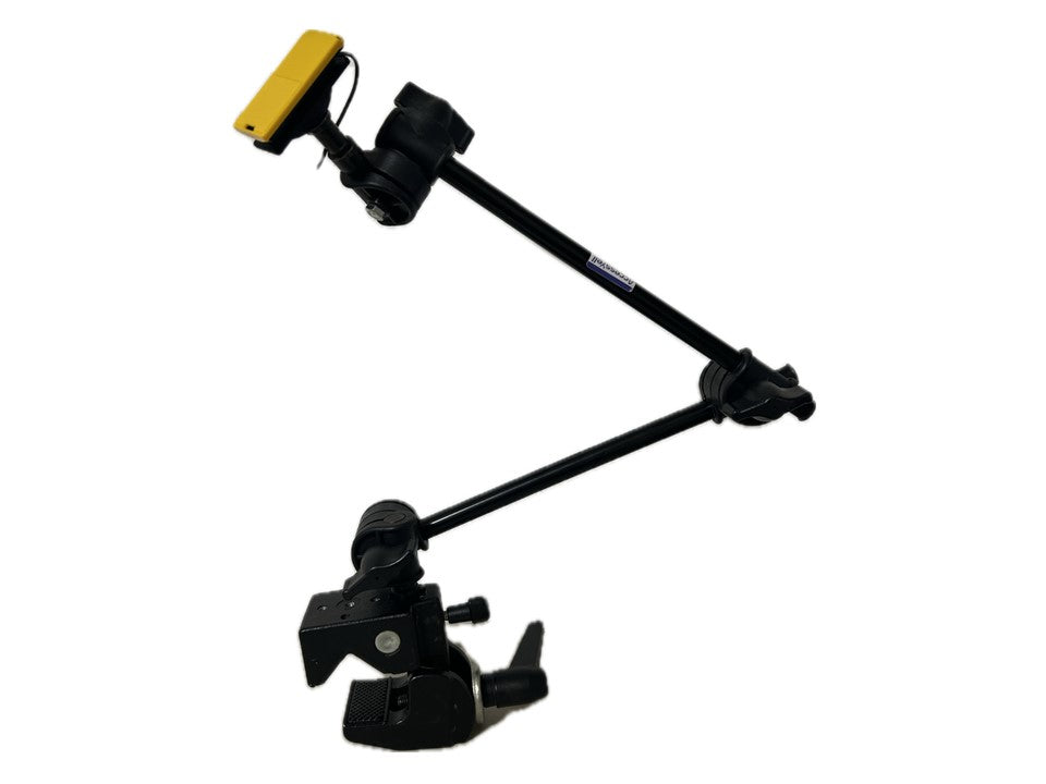 入力スイッチをしっかりと固定できるので、アームに取り付けてお好みの位置や角度でロングスイッチをお使いいただけます。