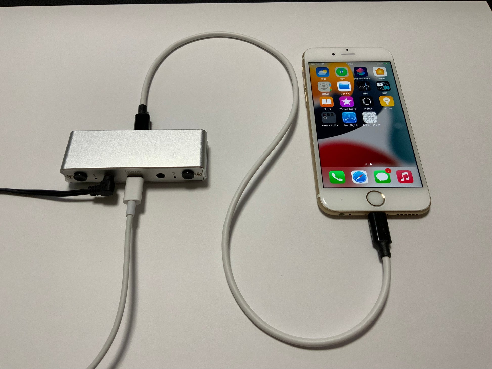 有線接続なのでトラブルも少なく、iOS機器と外部入力スイッチの接続を、本製品とケーブル1本だけで完結できます。